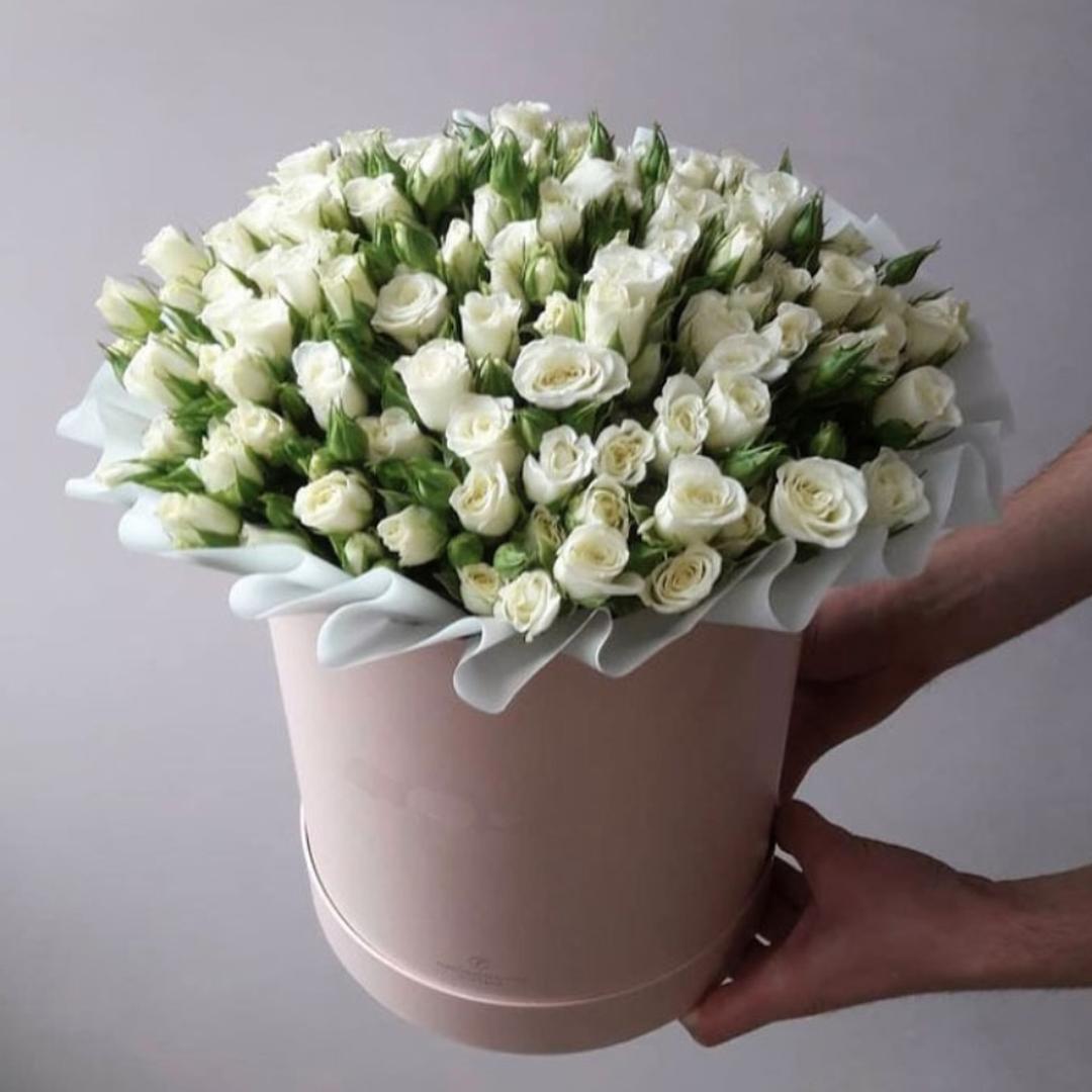 Step into timeless beauty with our "Eternal Grace" - a display of pristine white roses arranged with care in an elegant round box. This stunning creation is a testament to simplicity and elegance, where each snowy petal unfolds like a gentle whisper of peace and purity.