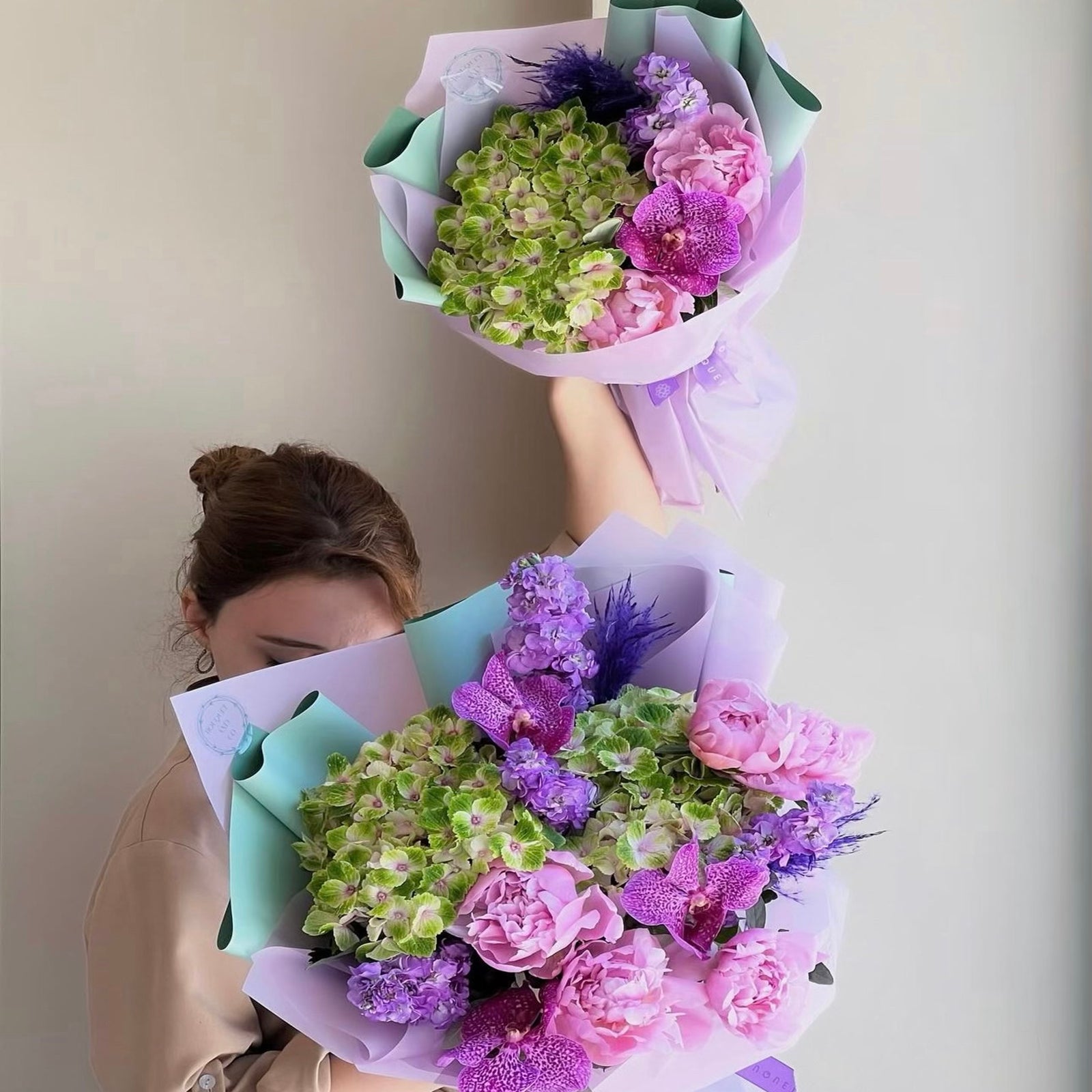 Step into a world of enchanting beauty with "Purple Dream," a stunning arrangement that features an array of lavender and pink blooms. This bouquet combines the delicate textures of various flowers to create a dreamlike, whimsical display. It's perfect for adding a touch of fantasy and charm to any occasion.